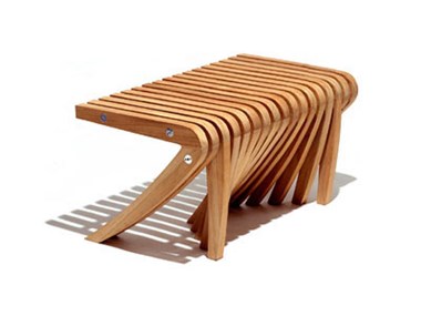 This Spirit Song Series patented Teak Table's smooth, flowing design sets it apart from all other teak furniture of its kind. While exceptionally elegant, this teak table is also extremely versatile as it can be used as a backless chair or a footrest as well. With all stainless steel hardware, the best quality teak, and an award winning design, we are certain that you will love this table in, or around, your home.