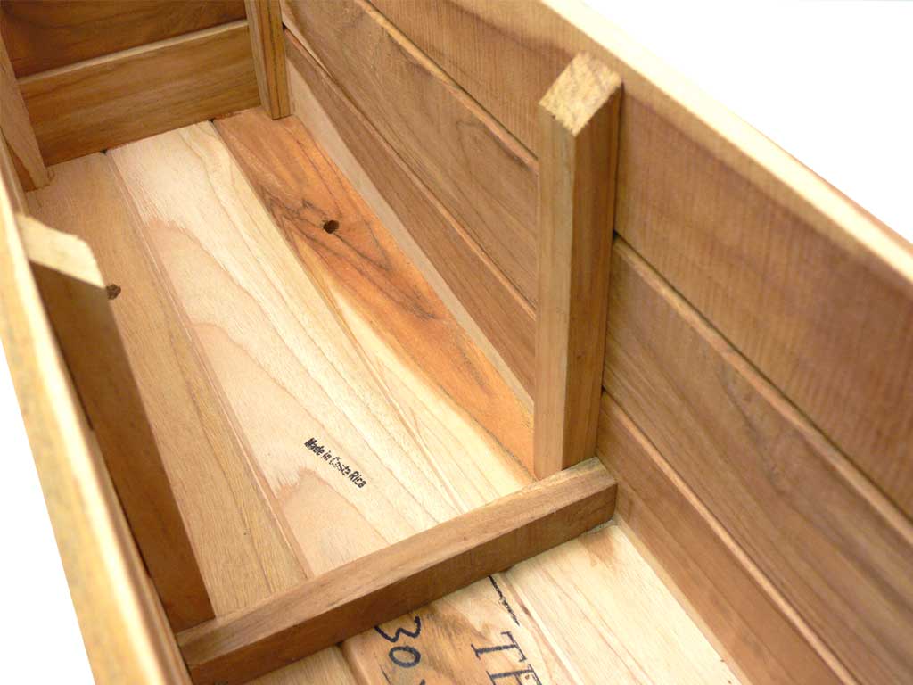 Our exquisite Teak Window Planter Boxes are built with 3/8" thick by 3" wide choice plantation grown teak wood. Assembled by hand in Costa Rica using top quality tongue and groove techniques.